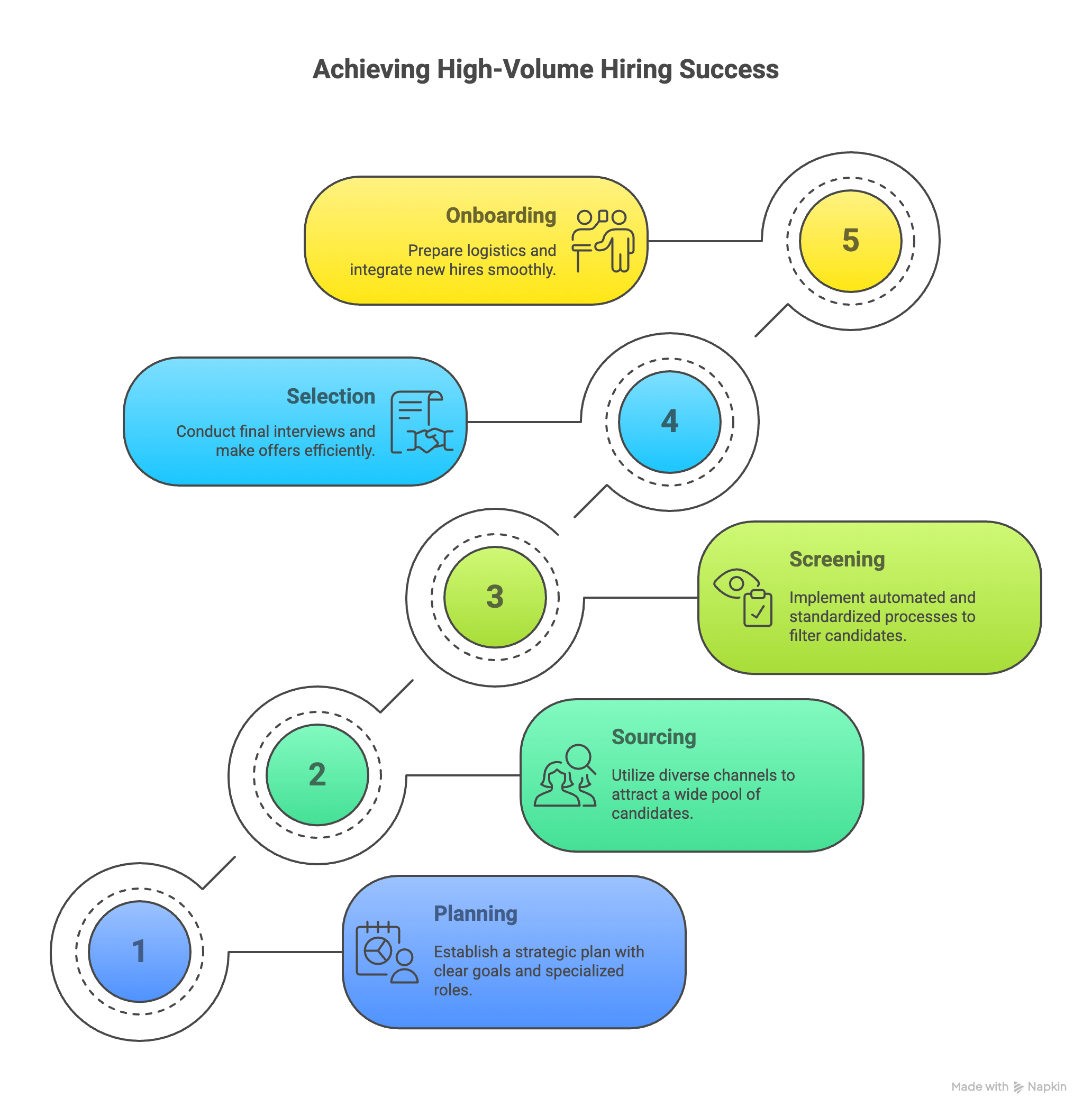 Successful high-volume hiring begins with a strategic plan that addresses every aspect of the recruitment lifecycle.