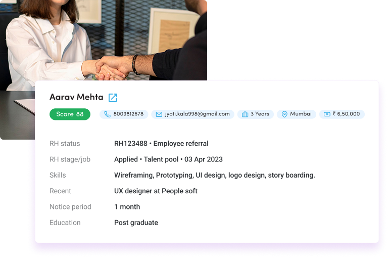 Hire thousands of candidates every week with zero slippages. Automatically match, screen and assess them using AI. Run large-scale weekend drives smoothly. And deduplicate applications across projects and hiring types.